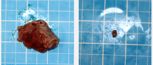 以下の写真が摘出した組織で、こちらは病理組織検査を行いました。