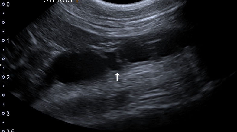避妊手術をしていないこともあり、子宮内に液体が貯留している可能性が考えられました。