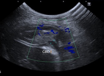 総胆管の拡張も認められ、十二指腸の開口部で閉塞を起こしている可能性が考えられました。