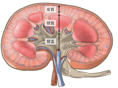 <腎臓は外側から皮質・髄質・腎盂となっている>
