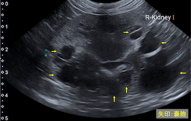 具体的には食欲の低下、多飲多尿、血尿などで、尿路感染も起こしやすいです。また重度に嚢胞が大きくなった場合、お腹が膨らんでくることもあります。