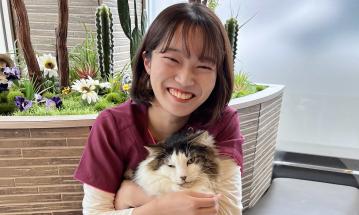 動物たち、オーナー様に寄り添う事の出来るケアスタッフになりたいです。お家では犬と猫を飼っています。何かお困りのことがあればお気軽にお声がけください。